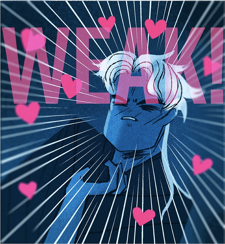 Hades firmly reiterates his thoughts: He is an all-powerful god. He’s got his shit together. He has a strong handle over his impulses. But when Persephone turns to look at him and exclaims, “There you are! Look, I’m a fury!” Hades loses it. Persephone teases him and says to him in a sing-song voice, she’s here to punish him. Hades internally masculine panics and collapses.