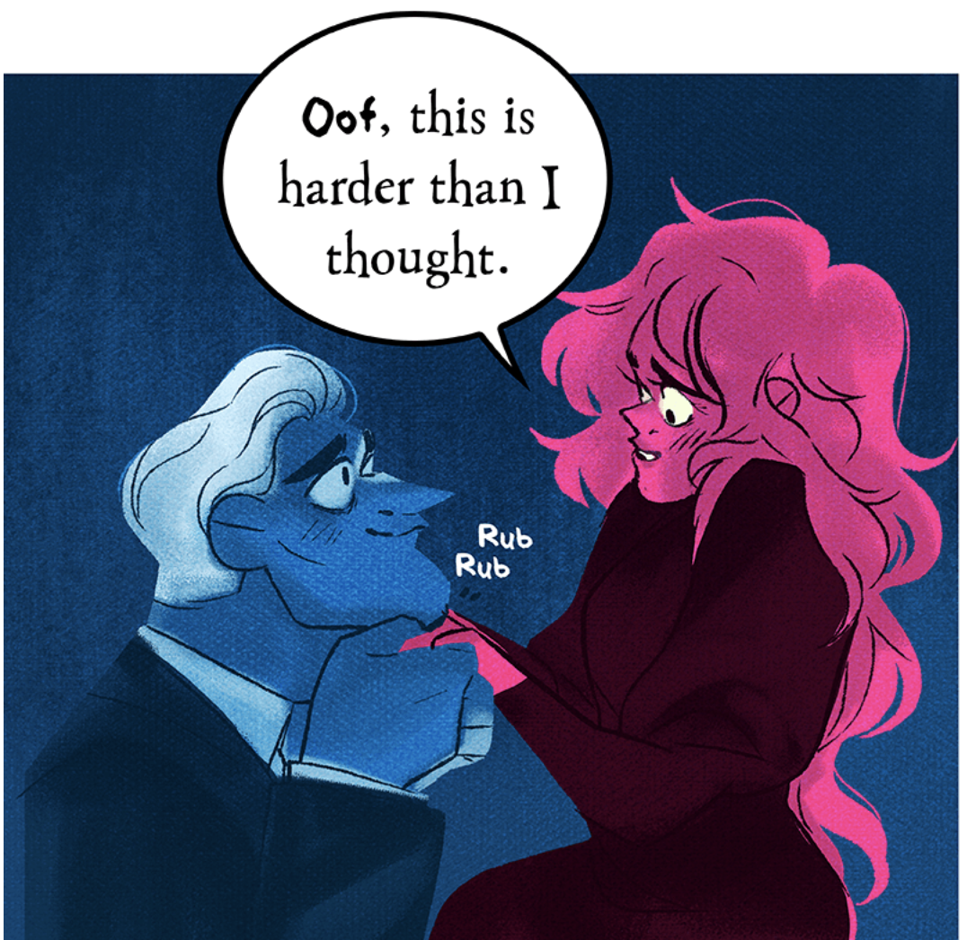 Persephone then shares that she feels guilty about the terms of her scholarship as she still needs to honor them, and that an intense hand-holding session with the King of the Underworld does quite fit with those terms. Hades apologises as he realises that he’s been intensely holding her hand, and states that she is putting herself under a lot of pressure. Persephone responds by saying that out of everyone Hades should understand the importance of duty. He sorrowfully looks away from her, but smiles coyly as she comments on the fact that both of them are going through some difficult things at the moment.